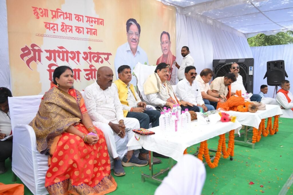 रायपुर, प्रखर मीडिया | राज्य नीति आयोग के उपाध्यक्ष (कैबिनेट मंत्री दर्जा) गणेश शंकर मिश्रा के सम्मान में मुरा में आयोजित कार्यक्रम क्षेत्रवासियों के लिए एक जनउत्सव बन गया। दक्षिणमुखी हनुमान मंदिर में पूजा-अर्चना से आरंभ हुए कार्यक्रम में बाइक रैली, कार काफिला, स्वागत द्वार और पुष्पवर्षा के बीच मिश्रा का खरोरा होते हुए मुरा आगमन हुआ।