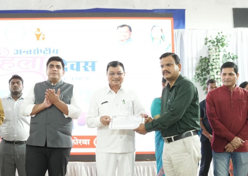 कोरबा। अंतर्राष्ट्रीय महिला दिवस के अवसर पर छत्तीसगढ़ शासन के वाणिज्य, उद्योग, श्रम, आबकारी व सार्वजनिक उपक्रम मंत्री लखन लाल देवांगन के आतिथ्य में कोरबा के राजीव गांधी ऑडिटोरियम में आयोजित जिला स्तरीय महतारी वंदन सम्मेलन/कार्यक्रम में जिले की विभिन्न क्षेत्रों में उत्कृष्ट कार्य करने वाली महिलाओं को सम्मानित एवं बाल विवाह मुक्त पंचायतों को प्रमाण पत्र प्रदान किया गया। इस अवसर पर महापौर श्रीमती संजू देवी राजपूत, नगर निगम सभापति नूतन सिंह ठाकुर, कलेक्टर कुणाल दुदावत, विशेष कर्तव्यस्थ अधिकारी तरुण कुमार किरण, सीईओ जिला पंचायत दिनेश नाग, जिला कार्यक्रम अधिकारी बसंत मिंज सहित अन्य जनप्रतिनिधि, विभागीय अधिकारी-कर्मचारी एवं बड़ी संख्या में महिलाएं उपस्थित थीं।